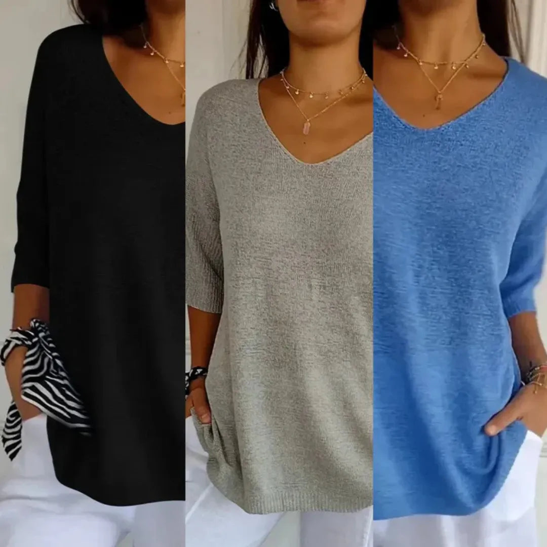 Mangas tres cuartos, textura ligera y acabados de calidad hacen de esta prenda un básico indispensable. Ideal para combinar con jeans, pantalones de lino o faldas elegantes.