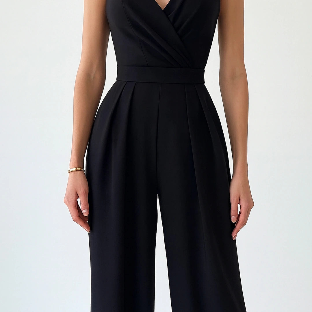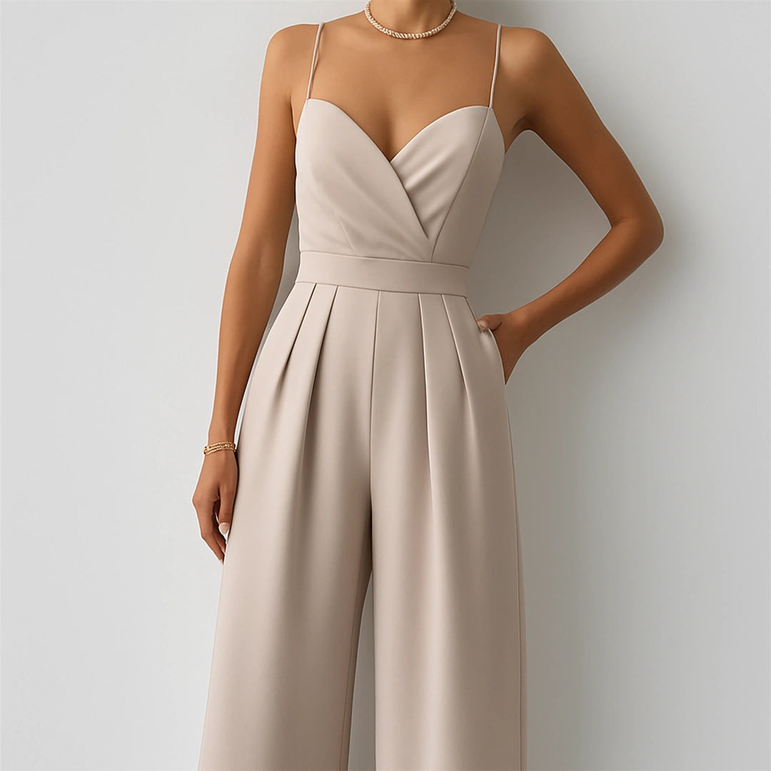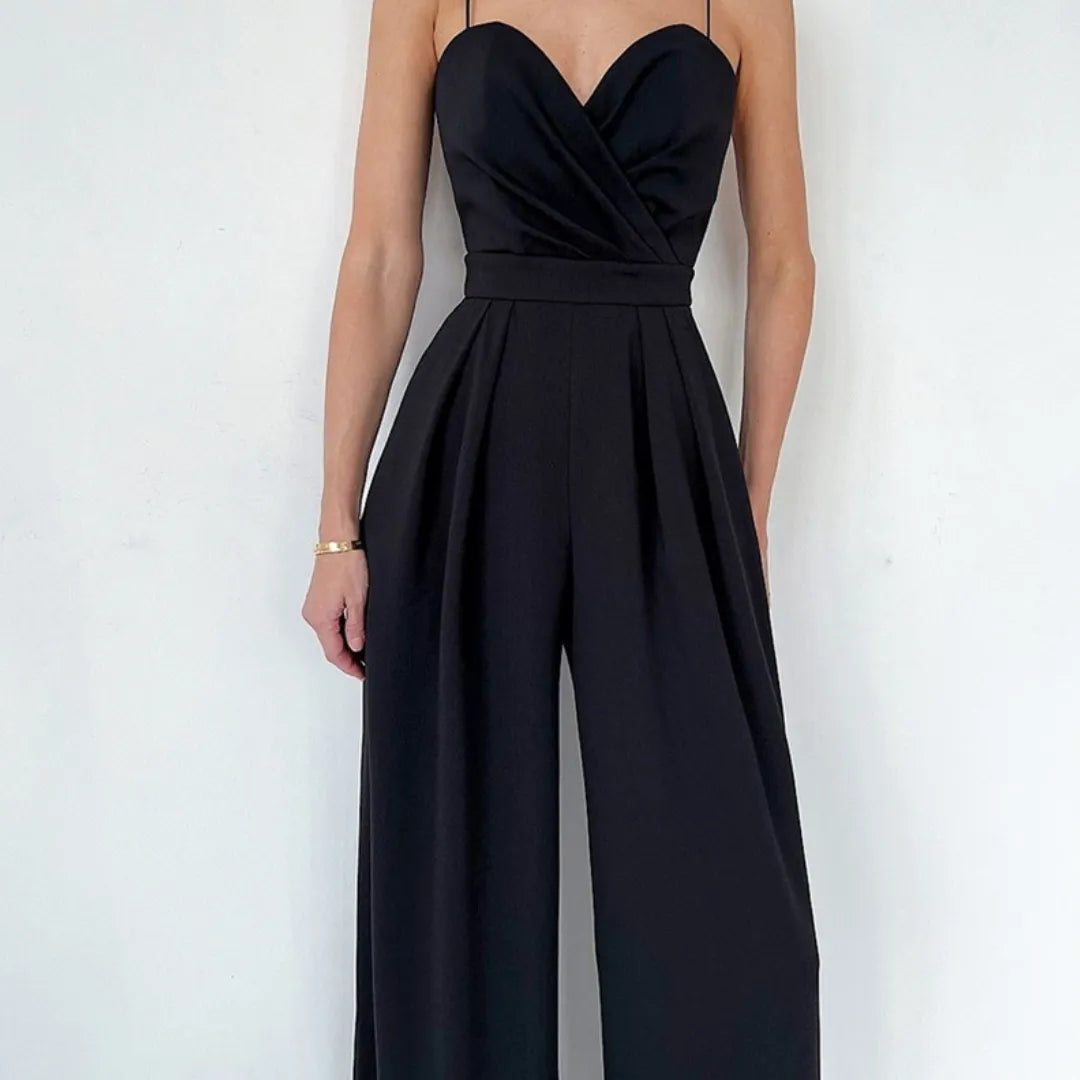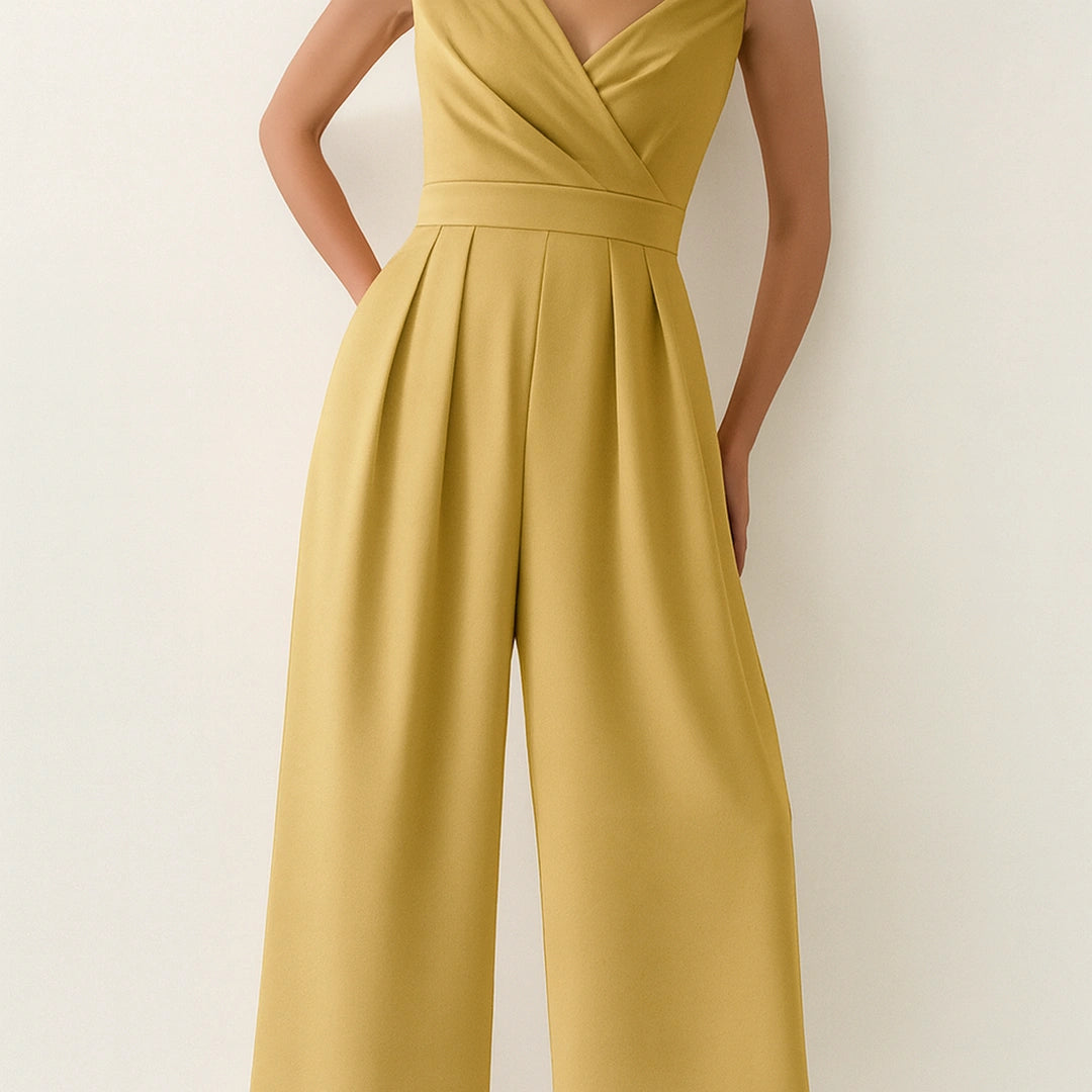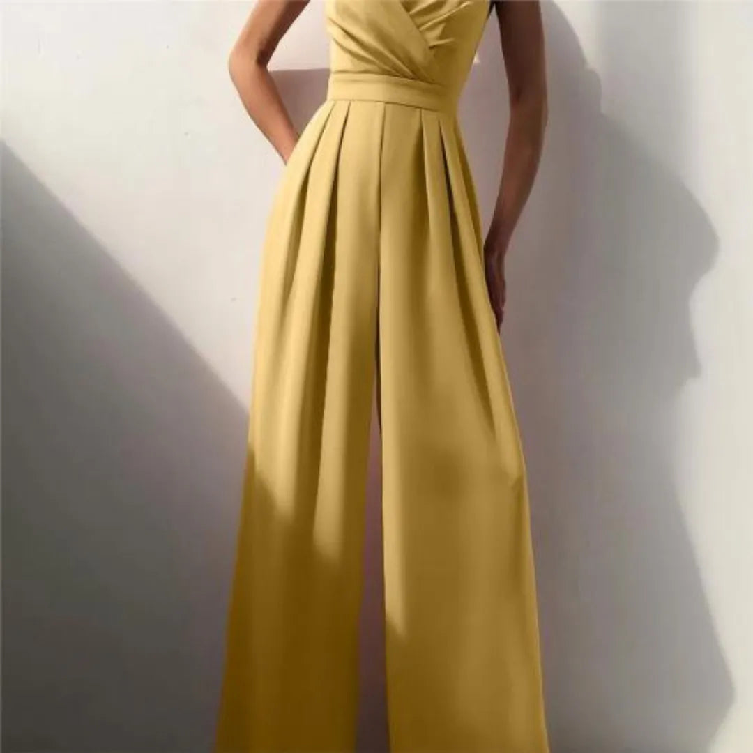 Con escote cruzado y tirantes finos, el Mono Golden Flow equilibra fluidez y estructura en una silueta que se adapta con naturalidad al cuerpo. Su corte de pierna ancha aporta movimiento y presencia, creando una caída impecable que estiliza sin esfuerzo.
