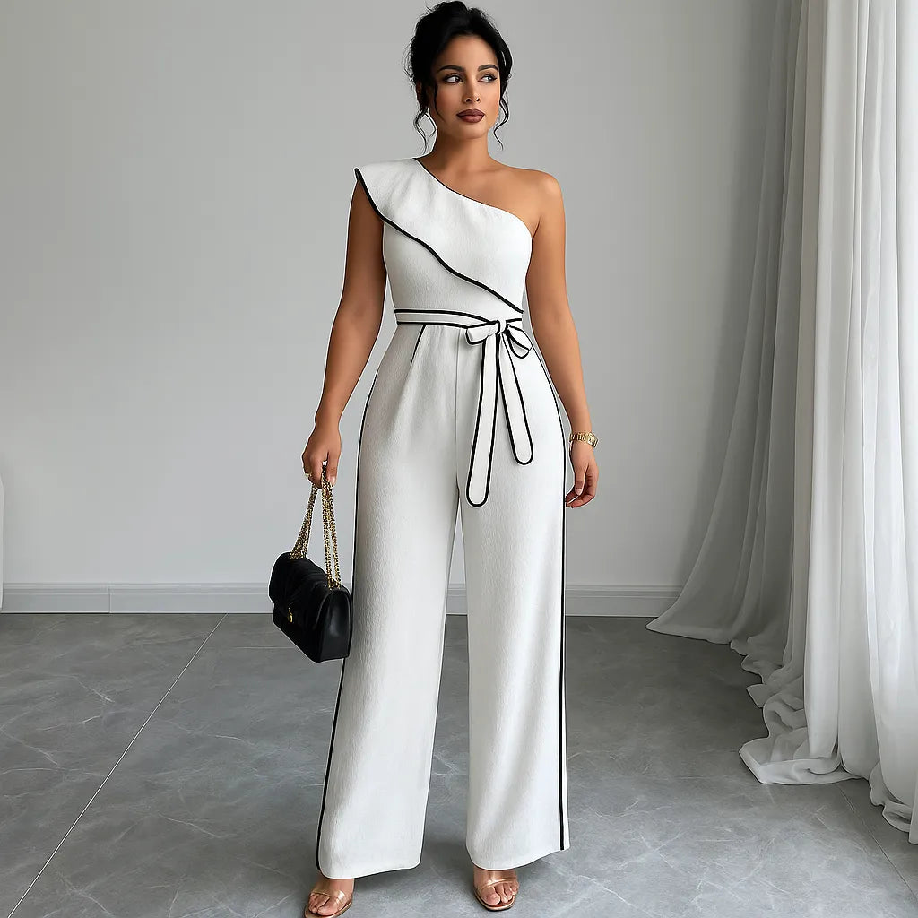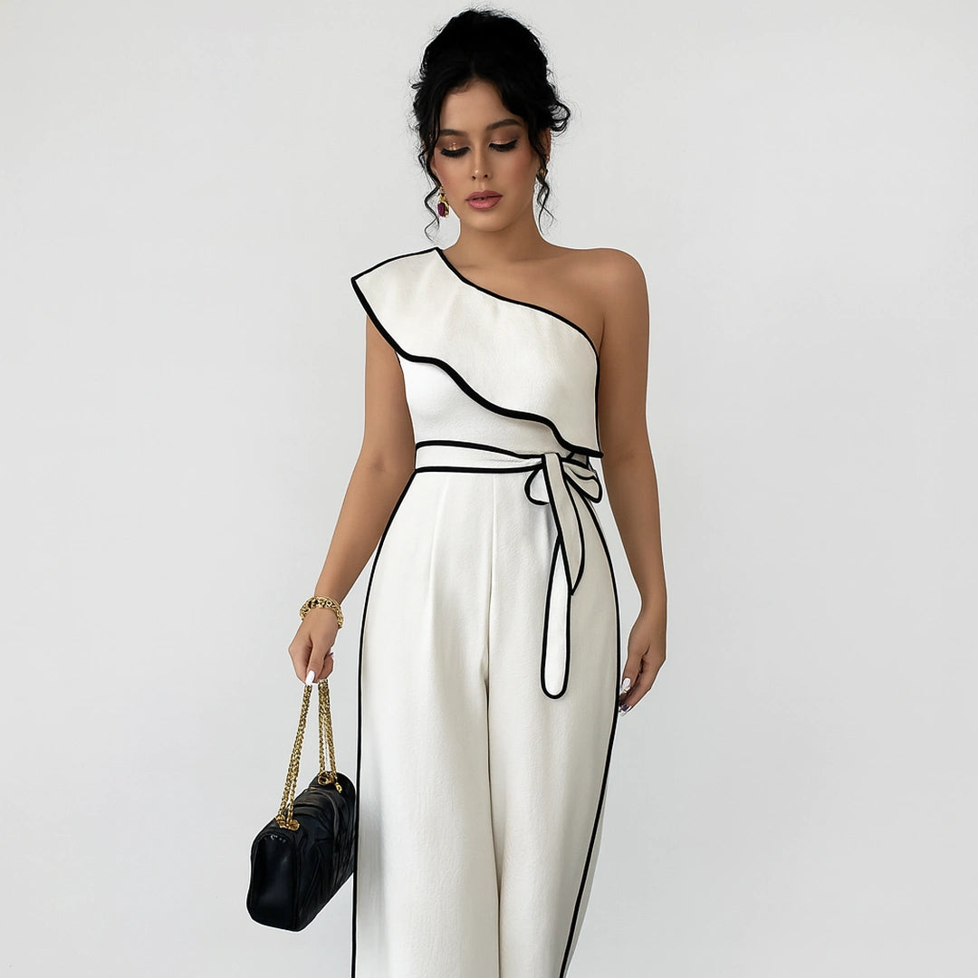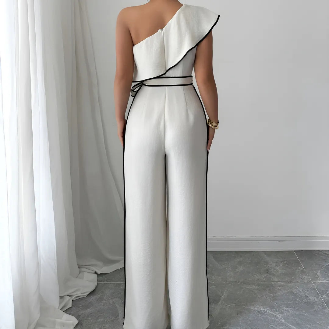 Con su corte asimétrico de un solo hombro y caída amplia, el Mono Infinity Grace redefine la elegancia contemporánea. Su cinturón ajustable enmarca la cintura con sutileza, mientras el tejido fluido aporta ligereza y presencia en cada paso.