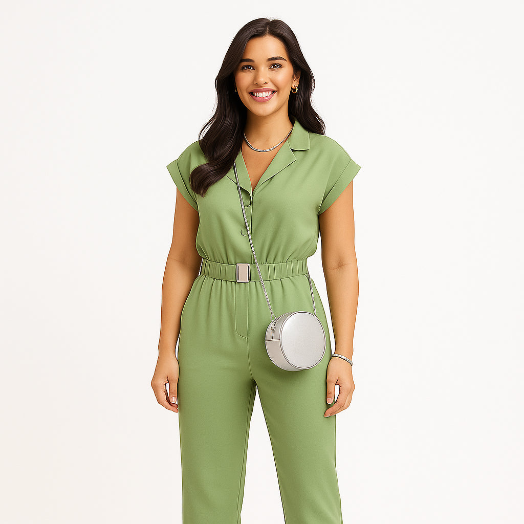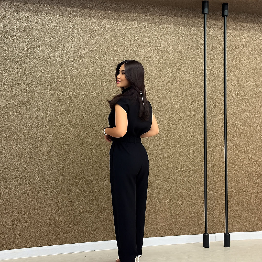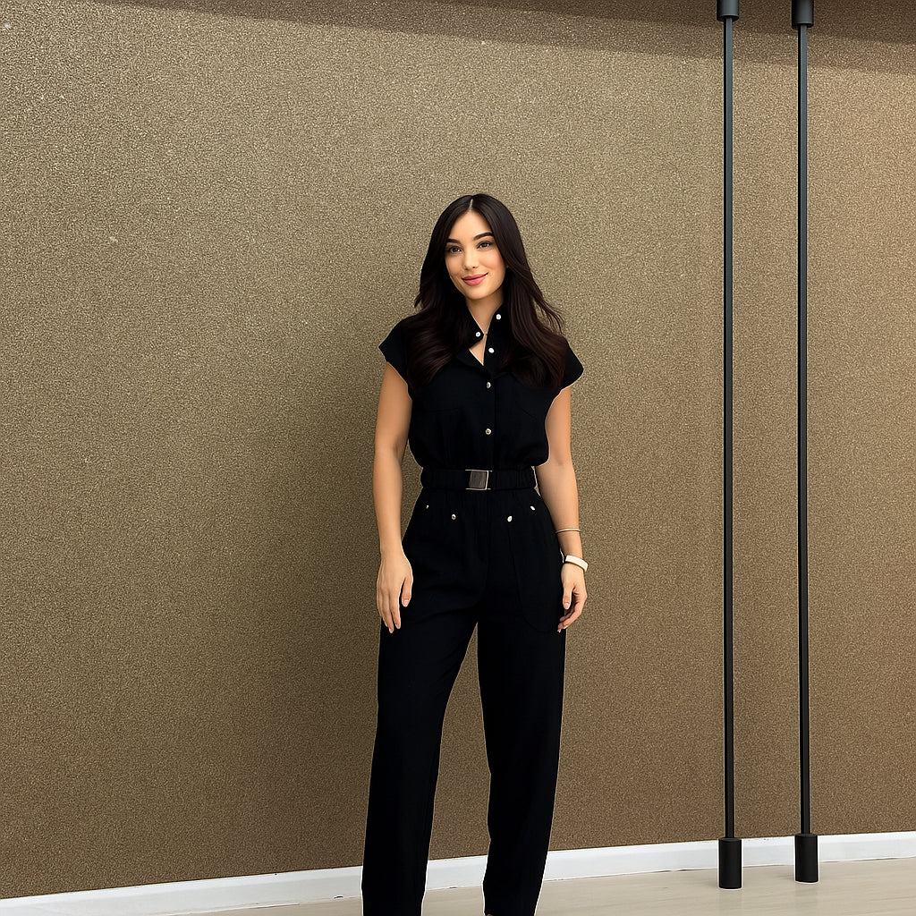 El Mono Lavinia fue diseñado para mujeres que aman la comodidad sin renunciar al estilo. Su corte ajustado en la cintura y su caída fluida crean una silueta femenina y sofisticada en cualquier ocasión.