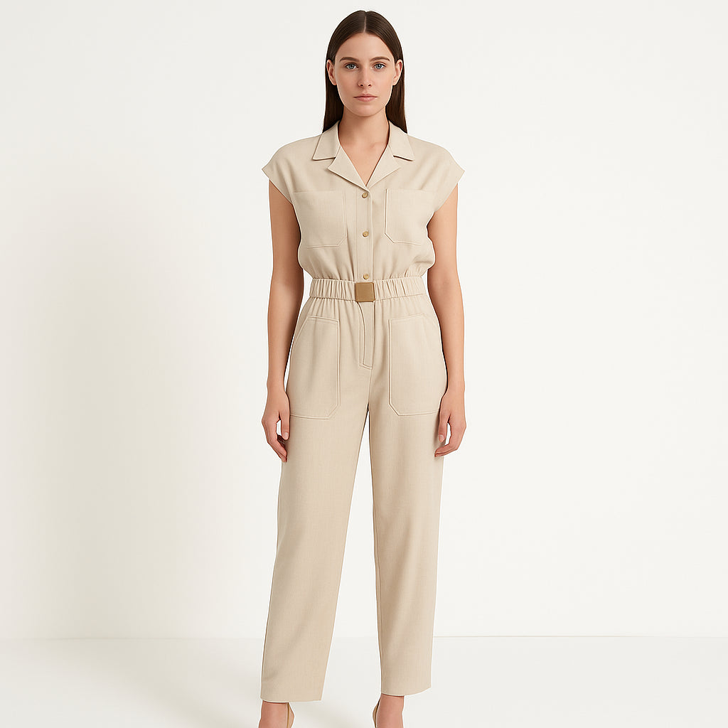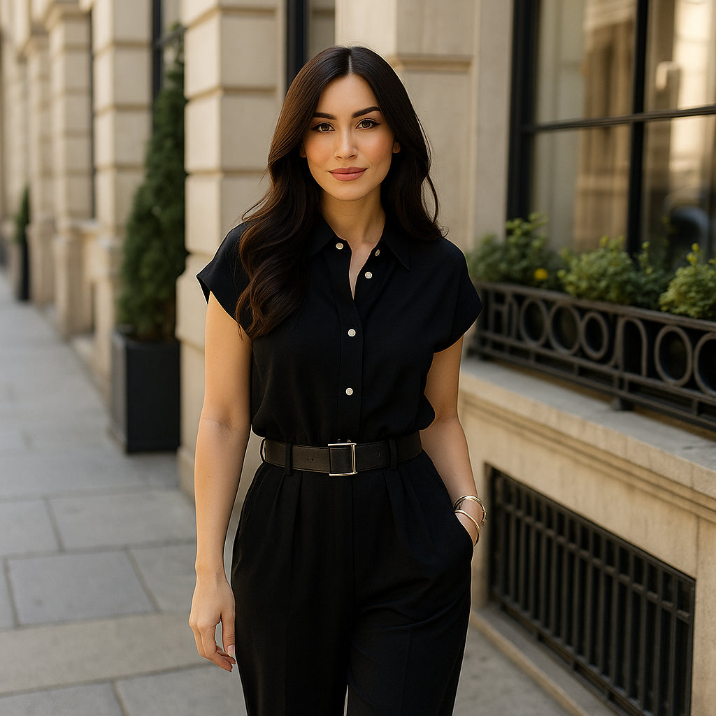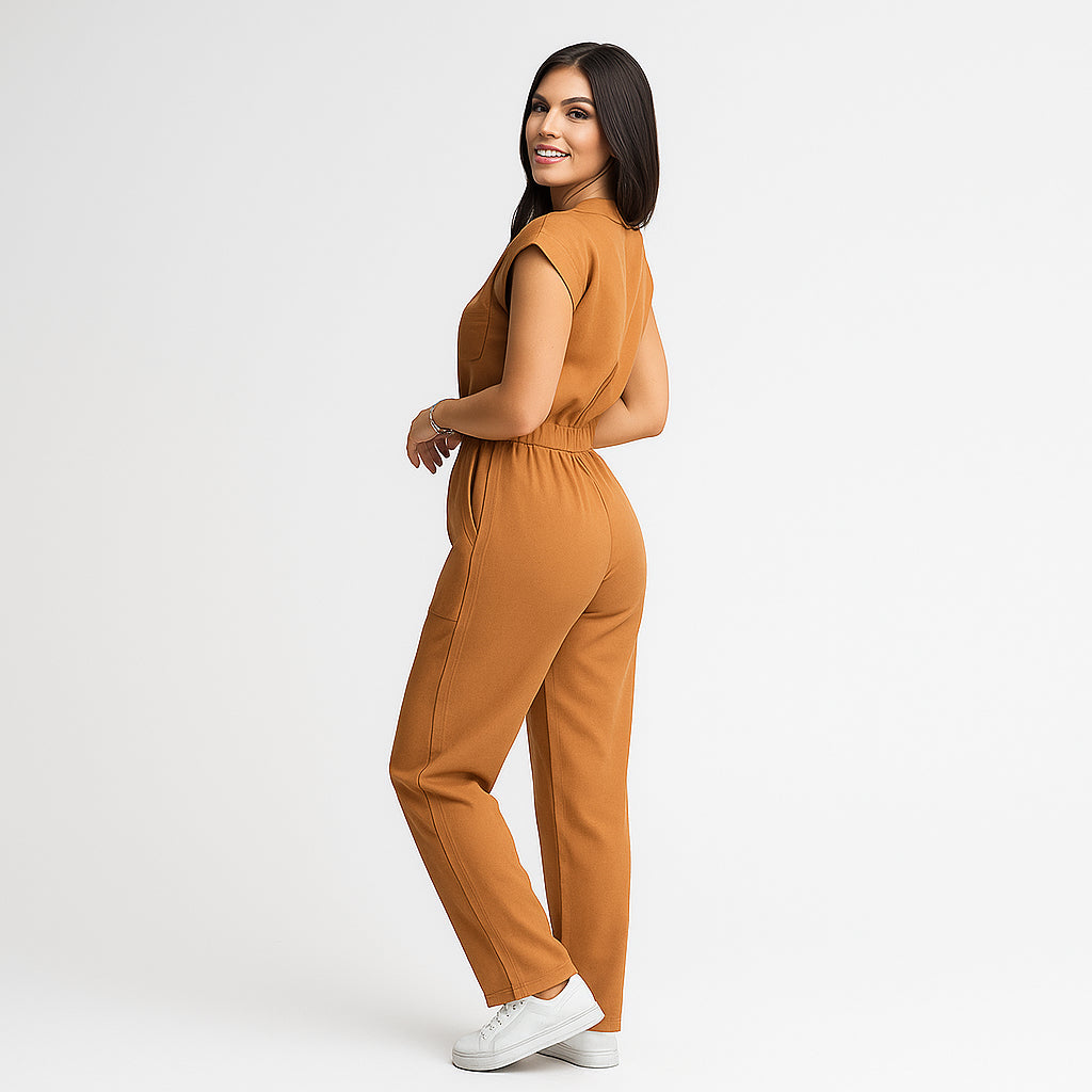 El Mono Lavinia fue diseñado para mujeres que aman la comodidad sin renunciar al estilo. Su corte ajustado en la cintura y su caída fluida crean una silueta femenina y sofisticada en cualquier ocasión.