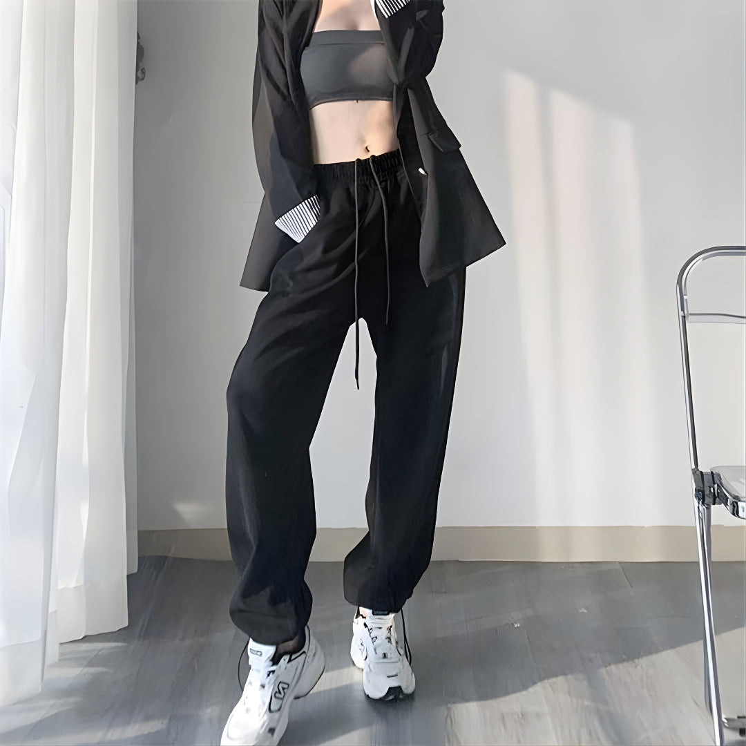 Con un diseño relajado y una caída fluida, esta prenda combina funcionalidad y estética urbana. Su cintura ajustable con cordón se adapta perfectamente al cuerpo, realzando la figura sin apretar y aportando un toque moderno a cualquier look.